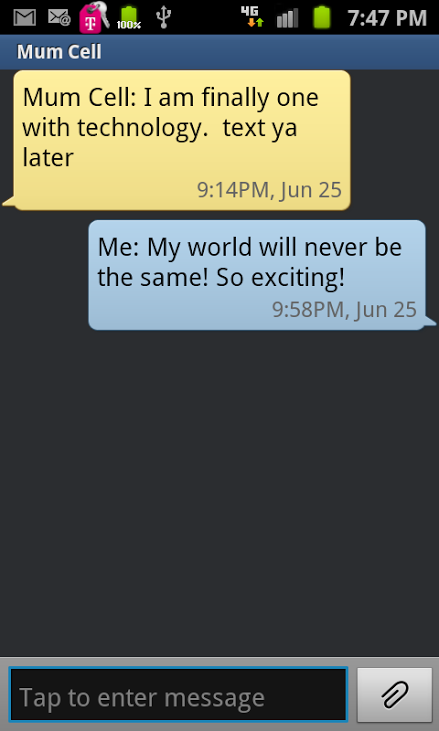 In earth-shattering news, my 76 year old mother sent me this Wednesday night: